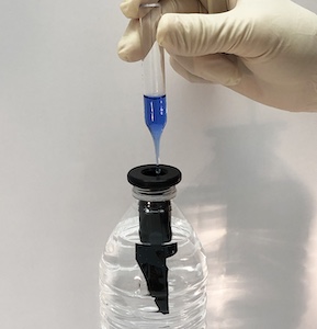 It allows the analyst the test the sample inside a plastic water bottle or sterile container rather than having to pour the sample into a sample cup each time, saving valuable time. The Vacu-vials Snapper has a wide brim at the top to allow it to rest on top of the aperture of, typically, a plastic water bottle or sterile drink container.